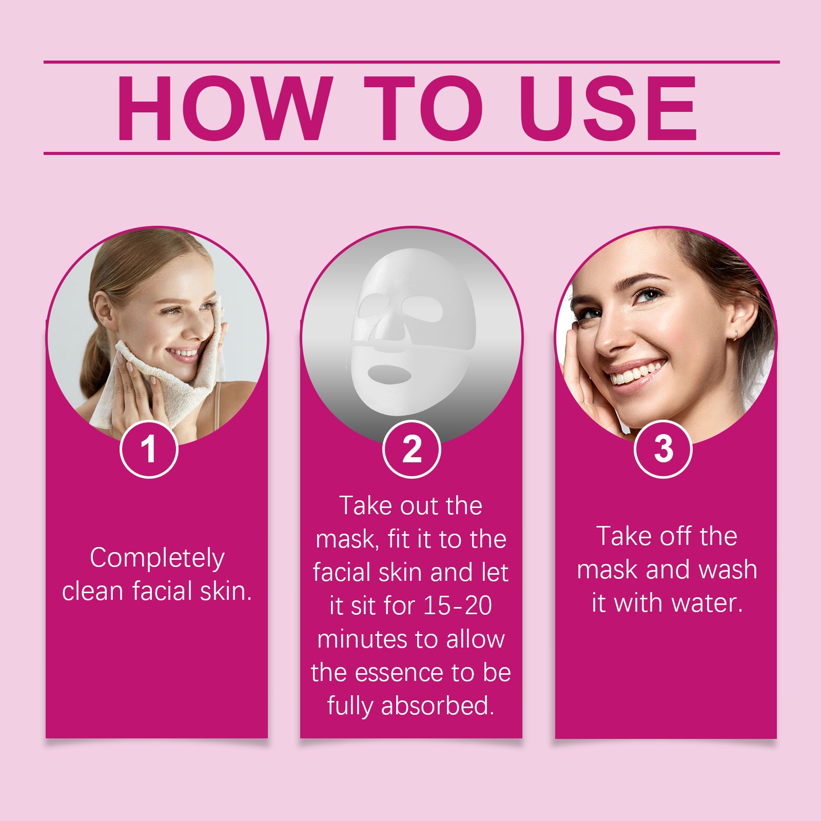 Our nicotinamide arbutin Moisturizing mask (bag) contains nicotinamide and collagen. It can improve skin tone, brighten the skin and create a uniform and bright complexion. Its usage is very simple: Take out the mask, apply it to your facial skin and leave it on for 15 to 20 minutes to allow the essence to be fully absorbed. Then remove the mask and wash it off with clean water. And it can easily improve the skin condition.