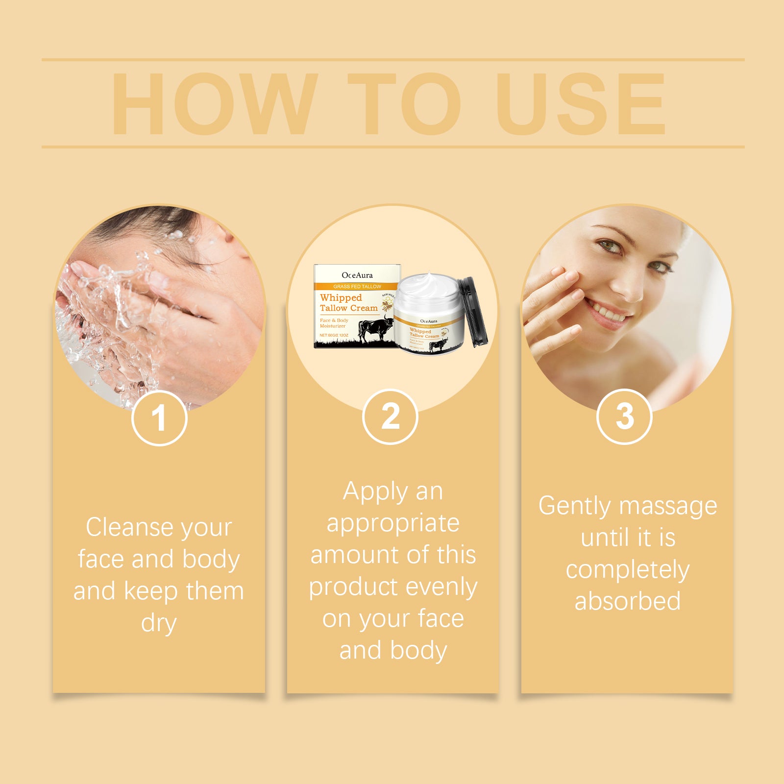 Our tallow honey moisturizer contains glycerin, mineral oil. It keeps moisturizing and leaves skin smooth and delicate. Mild ingredients enhance the use experience. Its use method is very simple: gently massage until completely absorbed, apply appropriate amount of this product evenly on the face and body, gently massage until completely absorbed. And can be suitable for a variety of skin types, worry-free use. Suitable for daily skin care options to meet daily needs.