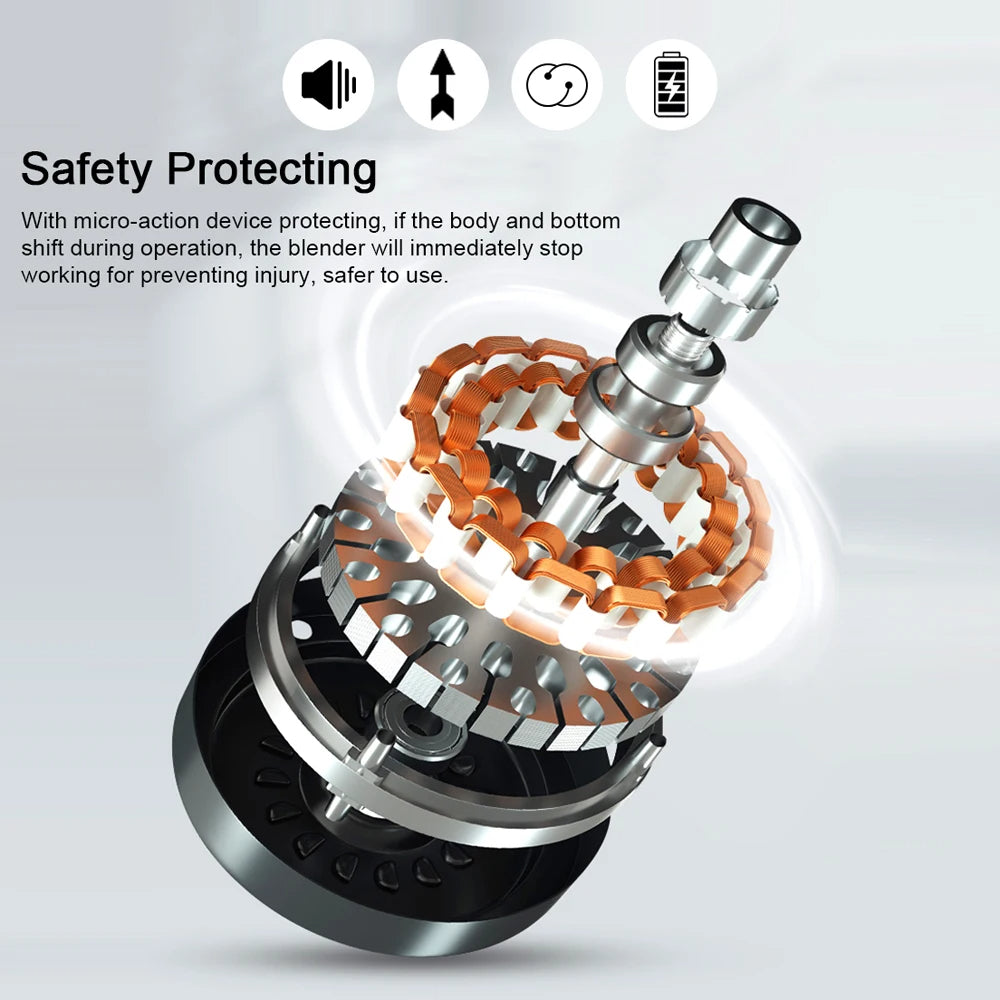 Safety Protecting: With micro-action device protecting, if the body and bottom shi-ft during operation, the blender will immediately stop working for preventing injury, safer to use.
